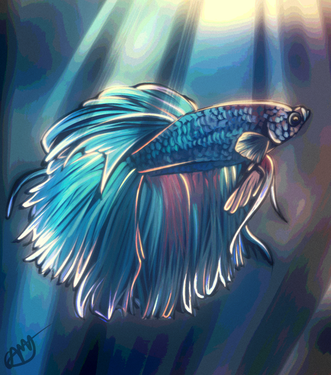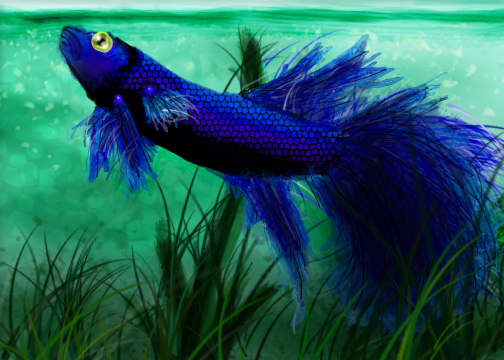 When you acquire a fish this colorful, you simply have to draw it. Though I did not do his colors justice in this scribble.Those gleaming bubbles are all thanks to Apofiss's magic bubble tutorial .
