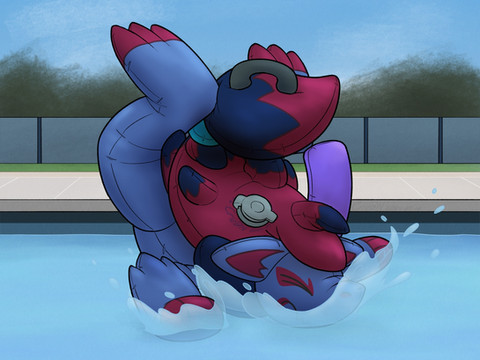 Ah, I'm sure he's fine with it~ He's a pooltoy, after all! Relaxing in a pool is their thing.