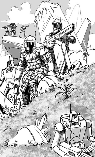 Fire SupportAegian Line Infantry putting up continuous fire while under cover of two Artemisia class steam titans. A brief look at units from my upcoming book series.