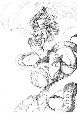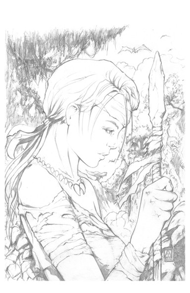 Hey Cross, I agree with your comments....I was gonna critique you on the boards (along with the others). Personnally, her face came out a little manly for me, the hands look....o k. Love the detail though, always can distinguish your art, which is a good thing.