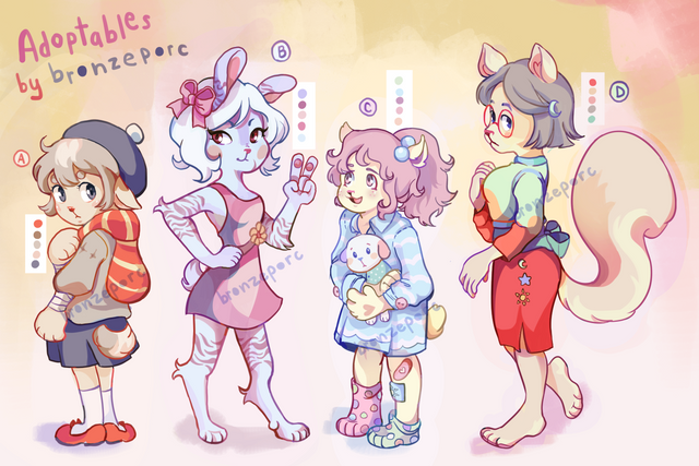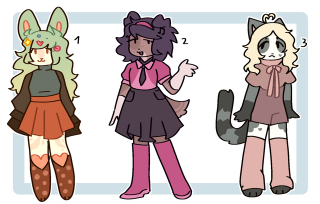 Made some rabbit girls for fun!! : ^ D ! I had a lot of fun making them and I think they are all so cute! Feel free to haggle with the prices I want these designs to get homesHere's w/o outfit versions: