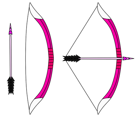 The Arc of Power can create laser arrows when fired and they can go very long distances and those arrows never miss their target. This weapon is used by "Kimberly Hart" aka "Pink Ranger".