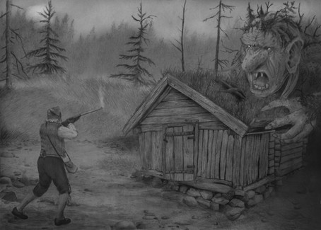 In the process of drawing this, I discovered John Bauer, and his illustrations of trolls are fabulous.