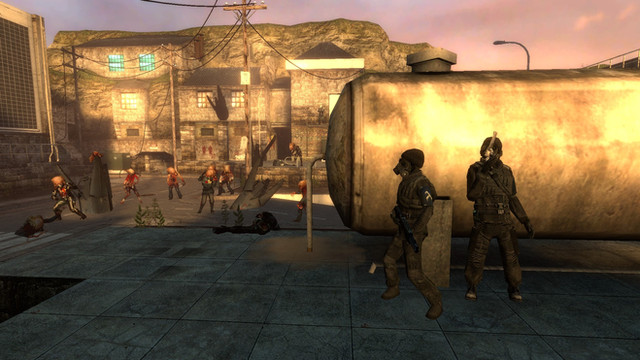 A survivor after losing his camp to bandits is left with only a Glock 17 handgun and the clothes on his back. He comes across an abandoned rural town, thinking that because the town does not appear as ruinous as the cities that he can find supplies without much trouble. At first his he did not encounter much trouble in his search say for the occasional reanimated half-eaten immobile corpses that tried in vain to devour him only to have him walk by them being unable to follow. So far his search did not bear much fruit. Seeing as the the town had already been largely ransacked during the first days of the outbreak he only managed to find a few bags of chips and a few unspent 9mm rounds for his gun. Having let his guard down he casually walks to a road only to detect a thick and wretched odor accompanied by a series of familiar and dreadful moans and roars in front of him. Realizing the danger he was in, he runs to cover at a nearby abandoned car, he peeks over with his weapon ready only to see that the path in front of him is thick with marauding zombies shambling, all bumping into each other uncaringly. He falls back into cover thinking to himself "Is it too late to go back now?"