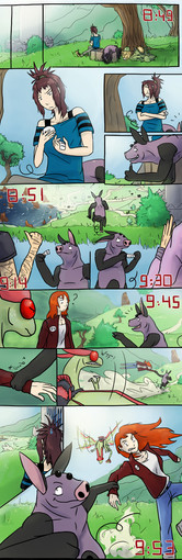 Well Bastian is friendly and nice pretty much to anyone. If he bump into someone he would start to apologize, especially to a girl xD May I ask you a question about Acui too? how does she behave in battle, when her pokemon are winning or losing? or when they get hurt?