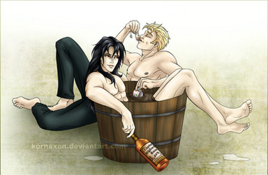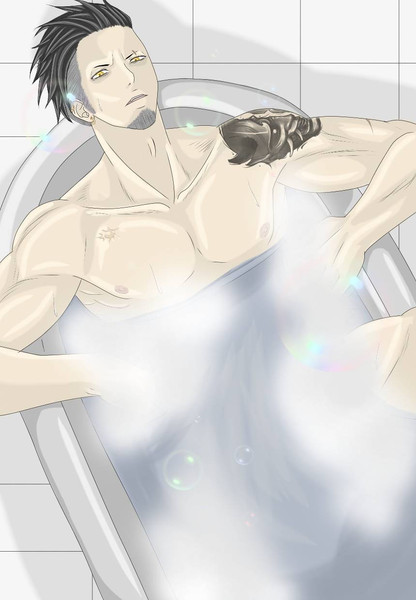 I love that he has a pillow in the bathtub. I wanna float in a bathtub with a pillow and good brandy (and Charles) D: