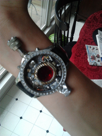 I hot glued the lines on the head for the rotting detail. the "metal rods" in the right ear are actually pencils hot glued in.