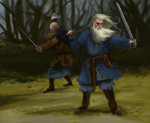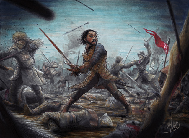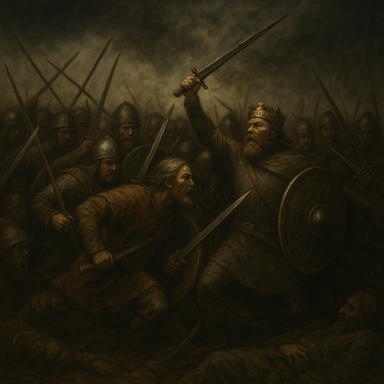 Seems to me that this was a scene after that woods came to Dunsinane.Β The fellow with the long sword is probably MacDuff.Β In that case this reign is almost over.