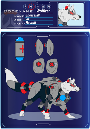 Backstory: Rover was one of ten complex omnic canines produced from the underground geniuses of the Serverside Responsive Corp. for Overwatch around the time the Omnic Crisis was in full swing and places were getting destroyed. The Roving Canine Units were used, in the beginning, to search for and rescue survivors of war torn or destroyed cities and areas. At the time these units were equipped to only speak to and calm down these people, however. When the Omnic Crisis went from bad to worse the units were sent to the battlefield to retrieve fallen soldiers, however, it wasn't long before half of the canines for taken out leaving 05, 02, 04, 10, and 08. It was then that mechanics at Overwatch attempted to add more sustaining properties to 02 and 04 as a test. This ended in their destruction and all but 05 ended up perishing soon after when they had to send the rest back in. When Overwatch disbanded, Wiston took the shut down and retired 05 with him and eventually restored him with new capabilities before the recall.