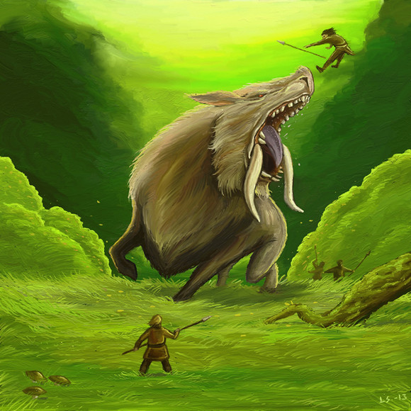 A beast of burden in a fantasy world I use to run my rpg campaign on.Dorengs are docile and very strong. They are deployed mostly in swampy fields where horses and oxen are rapidly sickened by fever.