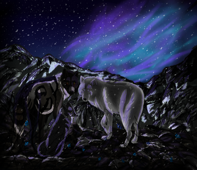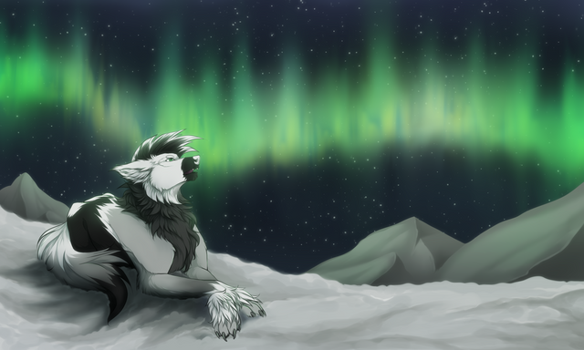Awww this is gorgeous! I looooove the aurora borealis, and wolves, and ice! Can't really go wrong with this XD