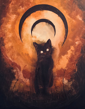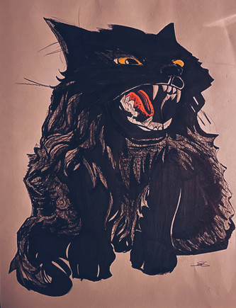 super cool! i love the orange brush strokes behind the cat, it really makes the black stand out. I oddly love the paws XD how claw like they are