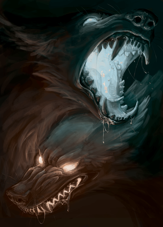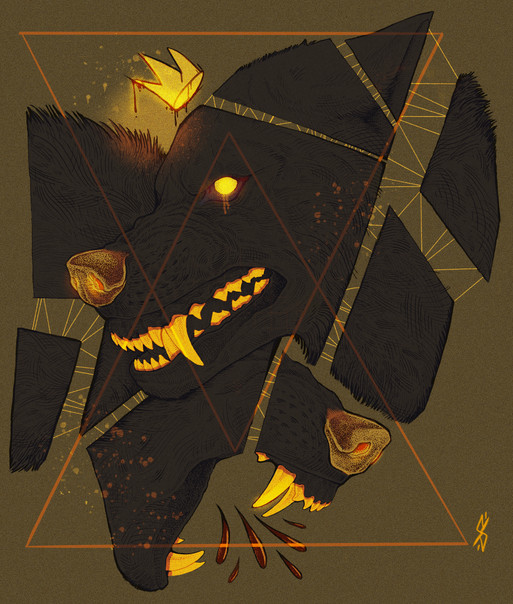 I love how the focus is on the mouth and there are small details in the rest defining the head shape. The teeth are really cool and love the smoke