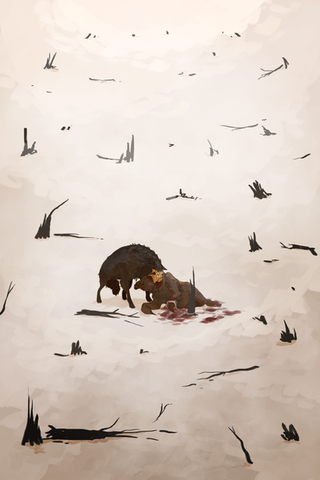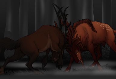 still trying to work on my background and gore skills, but I think it came out...kinda good? idkThis is Goldie all grown up, figthing his father.