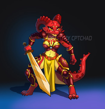 #dragon #horns #nudist #red #shield #sword