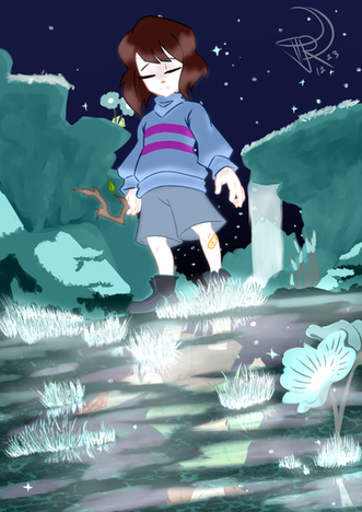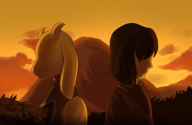 A commission for someone, they wanted their design for ralsei/asriel picking up a flower in a flowerfield at dawn.it was a great exercize for landscapes for sure xD i wanna kick my butt more to practice more!