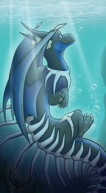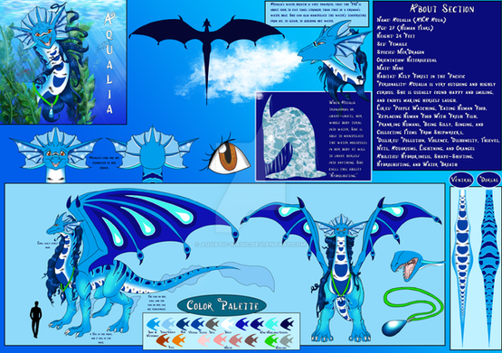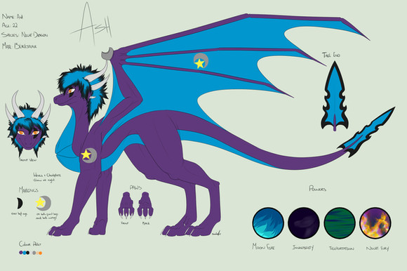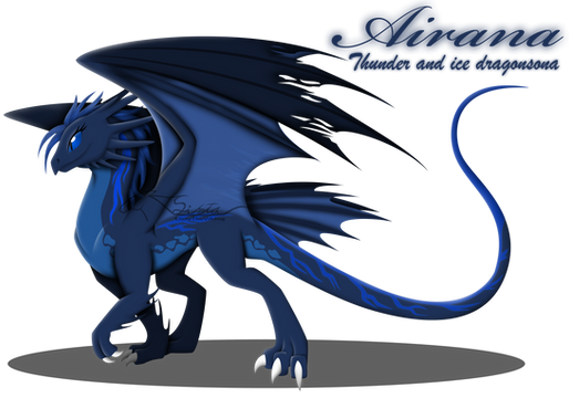 Arya is a Grey, White and Blue Dragoness with Air as her element; She has small grey scales covering the majority of her body made for aerodynamics with thicker plate scales covering her underside for protection. She has blue Hair, Wings and in her inner ears and always is seen wearing her favorite scarf. Her wings both have 2 thumbs on them used for gripping onto trees, cliffs etc, and her wings are rather flexible.