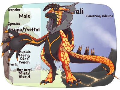 Shortly after seeing his granddaughter Razor fighting the father of the hated cross he set her in charge of training up the pokemon as his army, ranking her as the general. Some time passed and Razor set off on a flight Opal was approached by the small Tyrunt/Fletchling named Apricot and told of the fight that went down between Letting You and Prize. Concerned the Nation could be under possible threat Opal told the cross to keep an eye on them and report back if it goes further. Thoughts rushed threw his head of the Nation in chaos, complete war between everyone, those dark thoughts set hard with opal and his body started to glow dark purple before turning completely black before fading revealing a more creepy and ghostlike Opal. Now calling himself The Mad King while lost in thought of the darkness that might come. Loving his new ghost typing, Opal makes use of his new move Shadow Sneak and often travels around as a mere shadow.