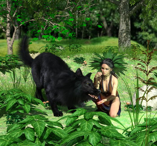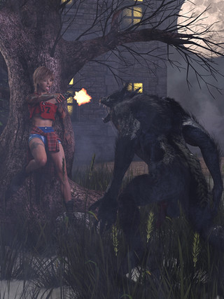 She wonders if she is early. "Am I that early today? Grandma and Jo are usually punctual." Deep in thought she does not notice the wolf coming around the side of the house, with a predatory look in its eyes.-----------------------------------------------
