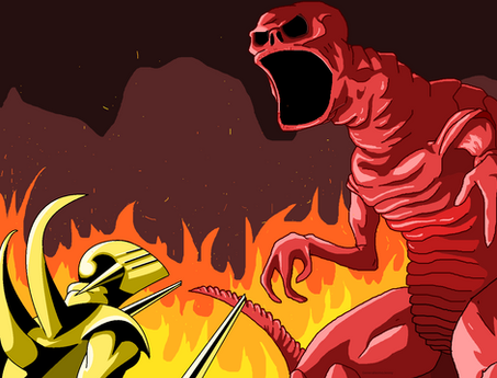 #battle #digitalart #monster #fanart #horror #dailydeviation #digitaldrawing #digitalillustration #godzilla #redemption #face_off #godzillafanart #bad #nes_godzilla_creepypasta #nes_godzilla_creepypasta_red