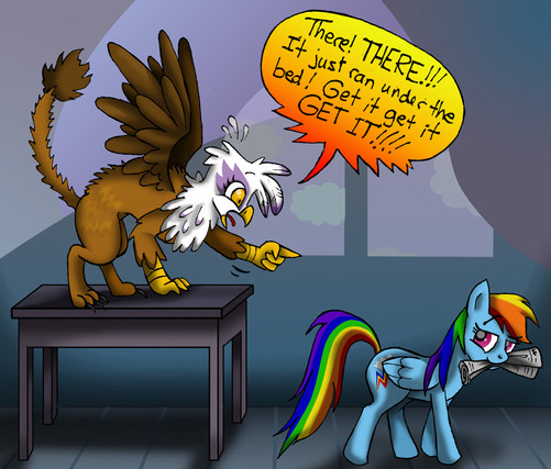 Gilda has Rainbow Dash pinned down there I guess ;>And why is Dashie terrified? Well, you can find out onΒ my tumblr :3 (NSFW)