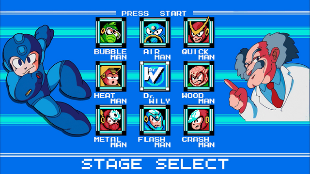 My tribute to Megaman 2, the Bubbleman layer, which a lot of people play first because it was located at the top left of the choices. This was definitely a game that required memorization of patterns.20" x 10" 144 dpi
