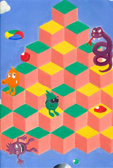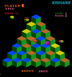 My tribute to Q*bert, one of the most innovative arcade games of the early 80's. Β The original game had a triangle with 7 levels of blocks. Β I re-imagined Level 13 with a massive pyramid covered in enemies.Originally 1982 from Gottlieb.