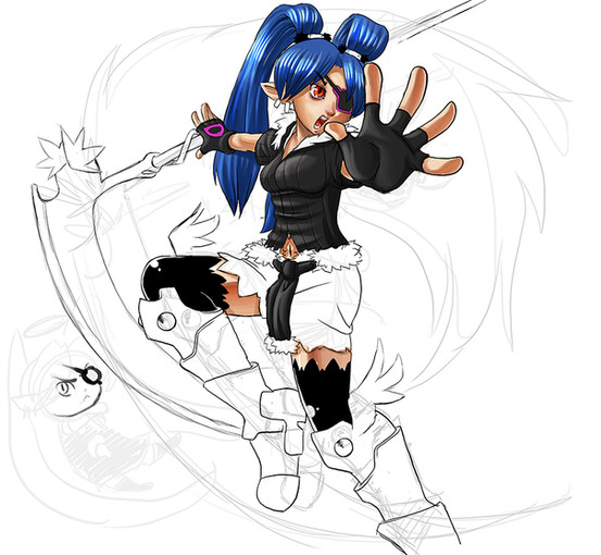 NO, this is not the completed commission for (sorry guy, I've got something BETTER in store.)This was actually done months ago and it's my sincere hope this isn't a repost, otherwise I'd be awfully embarassed. Not embarassed by the job done here though. Tira's moves I'm trying to really work into my style, as it's just as much the motion as it is the absurd costume that makes her fun!