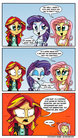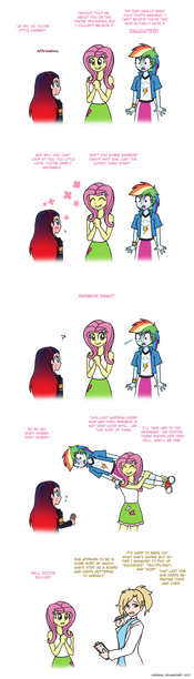 What? What did you think they were doing?A little joke that's been on my shelf ever since that EQG short where Sunset was trying to figure out how their world's magic works. I mean, as a scientist, naturally you'd want to take a closer look at this whole wings and ears and tails thing. But, of course, Rainbow just happens to pass by, and, you know, phrasing and all that...