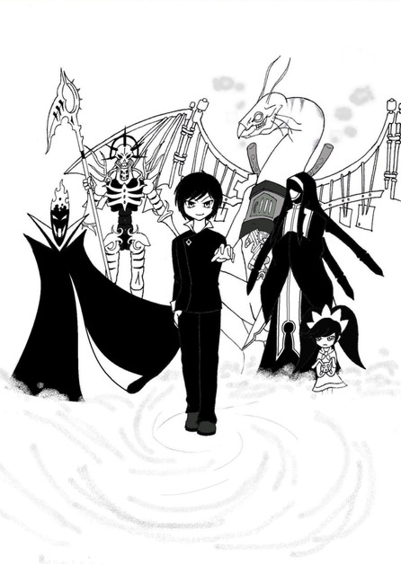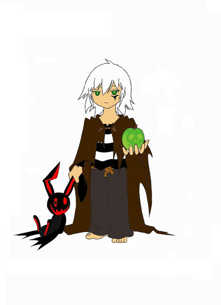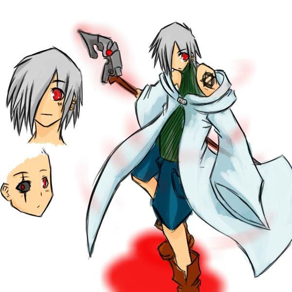 Take a necromancer from Guild Wars, the claws of Hades from God of War 3, Fate Averruncus from Negima?!, a bit of my madness and a random nobody, mix it all together, and you've got Evaxus !It's not exactly the way I wanted it...it's the pose I think. But hey, at least now you know what he's like. I made some changes to the uniform, refering mostly to his time as a somebody. Ino said that was allowed and I went a little nuts on it
