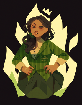 I'm so proud of this color scheme tho!! she looks really nice in green and purple