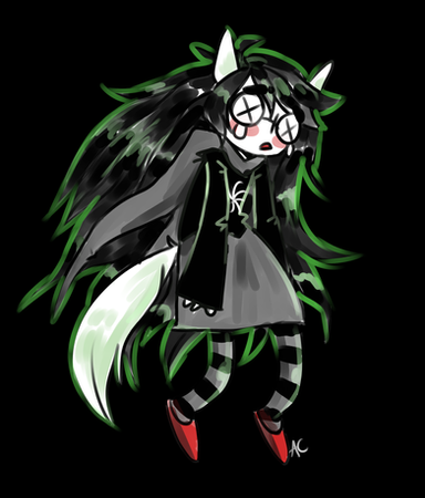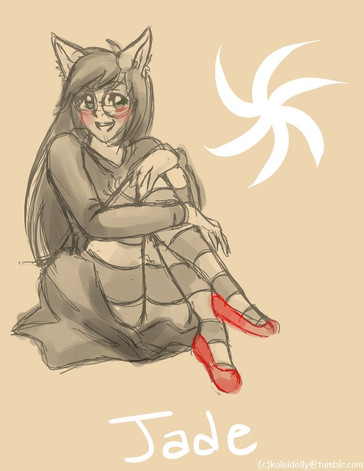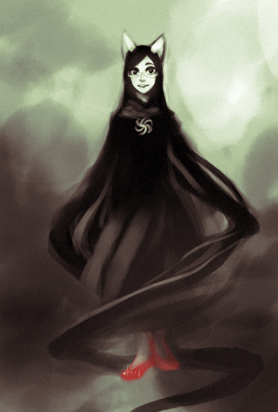 Personally, I think this is an amazing work of art. It clearly shows both most recent versions of Jade Harley accurately- God Tier and Grimbark. The God Tier Jade looks innocent, which is how she generally is portrayed in Homestuck fan art like this. The Grimbark Jade, however, looks like ferocious mind-controlled monster she is. The artwork is a bit messy, though a lot of art is like that and it doesn't interfere with the clarity or impact of the art. The talent is great and was applied to this work of art to make it a outstanding work indeed.