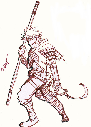 I'm in favor of the linework for sure. Β You have a lot of varying line thickness and it gives it kind of a comic-style feel. Β I'm not familiar with the character and if that is a mask? Β The size/proportion of the mask (if this is what it is) seems like maybe it's too small if it was going to fit back onto his face. Β But that's just be making a very small observation, like I said I'm not really familiar. Β Also, you have the lines on his face to create a shading affect, but you don't carry that out throughout other parts. Β Maybe try incorporating that a little bit into the mask, his hand, and neck