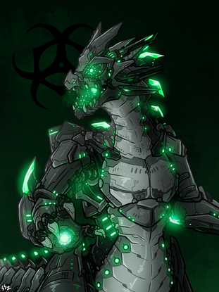 So long story short, this is a new character of mine, another Vortixx cause that's my main thing now these days. Like Malathion, he came from a similar Toa Empire Universe to the one Tuyet and Takanuva encountered each other, they're friends, however not only was he separated and forced to fight a futile fight, he was the brother of Cydronix in that universe, that Cydronix died and he went on to fight in his presumably lost friend and brother's stead, losing limbs and replacing them with prosthetic replacements along the way until he too, was ripped from the fight into the same universe the Cy y'guys are familiar with is in. Aside from all this, he and Cydronix are not aware of their bizarre relation to each other other than looking similar. He also has developed an ability with his shield where whenever he blocks an elemental or unique attack, his blaster will mimic it to an extent with how the projectiles work. You hit the shield with a vampiric ability? Now every shot he nails you with will have a life steal effect and will heal him a little for example. Its not permanent or anything and he can only mimic one at a time. So there's that.