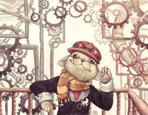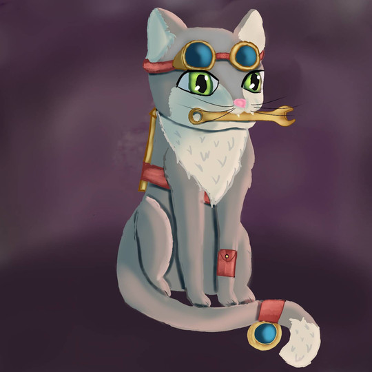 #calico #cat #cogs #cogsworth #goggles #pocketwatch #scarf #steampunk