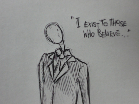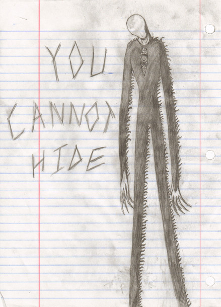 Slender was the Pioneer of CreepyPasta's I think? He is a joke. It's a mixture between a Sociopathic Child Abducting FACE-LESS Alter-ego that was never found (the symbolism, of course) and Shadow Beings/Shadow People.