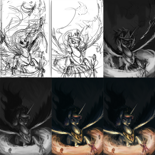 So I apparently ended up saving 'The Nightmare Returns' at different stages by accident, so I'm putting them to use and showing you all the stages of how I made this piece.Comment below if I should do these again sometime, it's interesting watching it go from nout to done