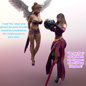 "On my visit to another universe, I met Super Goddess Elza. She may seem fearsome, with her perpetually stoic expression and her 250 cm height, but you'd be surprised how sweet she is! Even when she looks irritated, she's fond of sending out kind telepathic thoughts to those she wants to talk to. It's always interesting to see how other goddesses present themselves to the world. I always try to be casual when I interact with mortals, but I know plenty of goddesses who love acting like queens or conquerors. Elza has just grown accustomed to being stoic all the time.