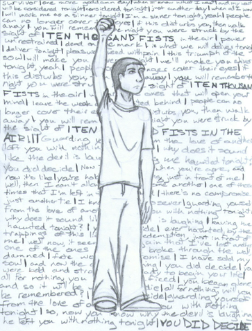 I don't exactly know why his hands are in those positions; I was just practicing hands. And even though the left hand isn't completely in the right position someone would normally hold it, this is still my favorite drawing. I tried to make a front view of him, but it's horrible in comparison, so I'm not putting it up."
