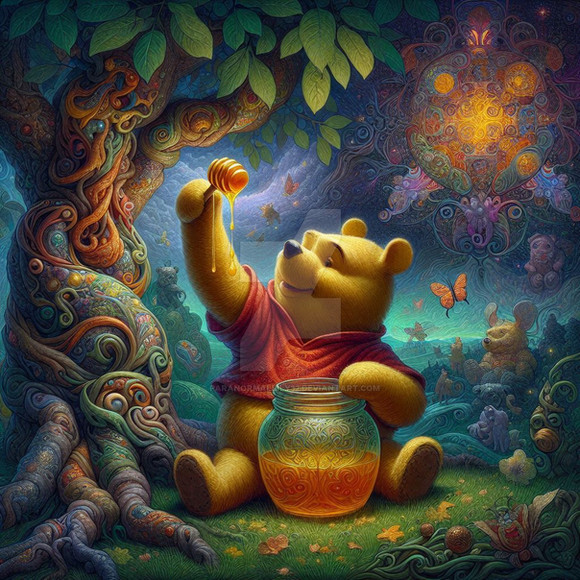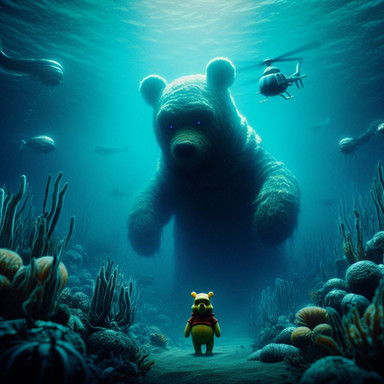 What AI thinks Winnie the Pooh looks like in a vast ocean. Part of the phobia series.Available for purchase on Cryptic Paw's Patreon!