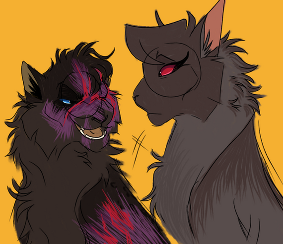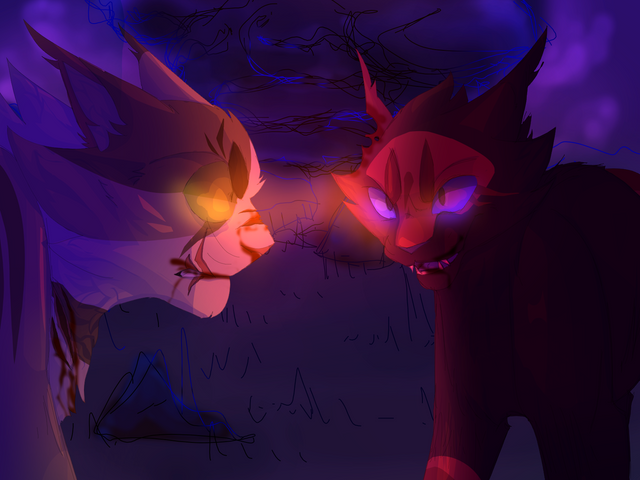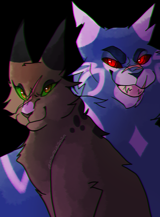 Sol is ultimately scrapped from this au, he wasn’t really that important in the 3rd arc anyway. I’m addition to this, Jaypaw does not have a power (giving him more reason to hate starclan), and Hollypaw has a modified version of jaypaw’s power, being able to experience someone else’s dreams but not actually being able to tell who that dream belongs to. Anyway one night Brokenstar tells Jayfeather that the eclipse is going to happen soon and that he should use it as a fake sign from starclan saying that starclan has abandoned the clans in an attempt to get more cats to either go atheist and join the dark forest. Hollypaw snoops in on this, but she doesn’t know it was Jaypaw’s dream. The eclipse battle comes and lionpaw almost kills crowfeather like in the books but this time breezepelt tackles lionpaw off of his dad, wanting to kill crowfeather himself. Jaypaw shouts out his fake starclan sign as the eclipse darkens the sky. A select few cats eventually join Jaypaw and Breezepaw in the dark forest after believe starclan has abandoned them after this. Hollypaw is shocked and betrayed at the realization that Jaypaw is colluding with the dark forest.