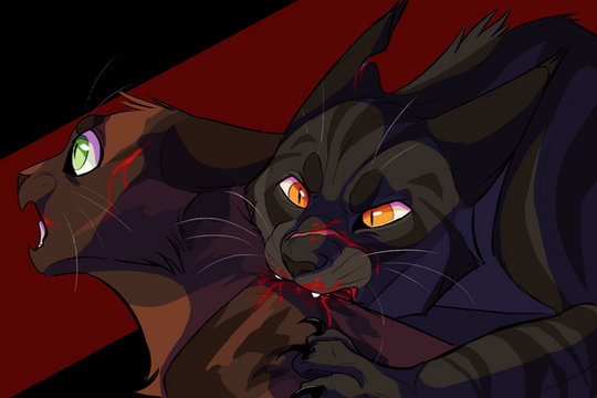 During the fire, Squirrelflight is leading the three to safety before Jaystrike takes this opportunity to kill squirrelflight since she was severely wounded in the eclipse battle and reveals to his siblings their real parentage, hoping they’ll join him and breezepelt. Instead, Lionblaze and Hollyleaf later agree Jaystrike r and Breezepelt have to be stopped, from this point Hollyleaf acts as a spy on Jaystrike’s dreams. Jaystrike marks squirrelflight’s body with an ‘x’ mark and leaves a dead rabbit by her body after everyone’s gone.