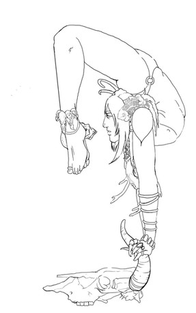Another WIP! This one is of a new character for ! I haven't decided on a name for her yet, but she's a contortionist (obviously XD ) in a circus. She has a history of abuse by her step-father after her mother died, which she eventually 'rectified', became homeless, and then ended up getting picked up by the Cirque Des Horreurs, which she made her home with so many other runaways with equally dark histories.Fun stuff