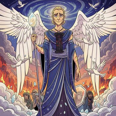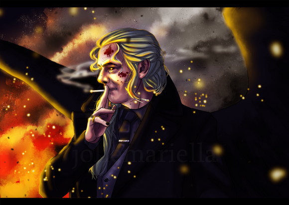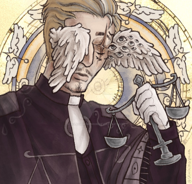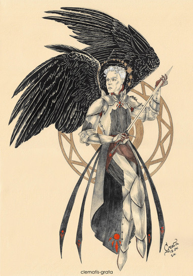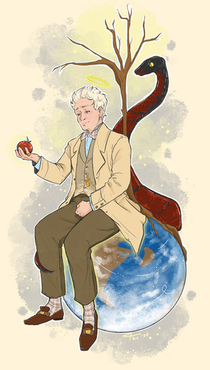 Everyone’s been out here designing neat secondary angel forms for Aziraphale and I was feeling left out, so here’s mine! As much as I love versions that give him a million eyes, that design aesthetic is traditionally relegated to Cherubim, according to christian angelology, and I decided to take more inspiration from their description of Principalities, which supposedly wear a crown and bear a sceptre. Obviously I substituted the sceptre for the flaming sword here and threw in some extra arms and wings because tbh that’s just the kind of pain I like to inflict on myself XD Crowley wasn’t even supposed to be IN this picture, but Az had all those empty hands, and well, here we are XD