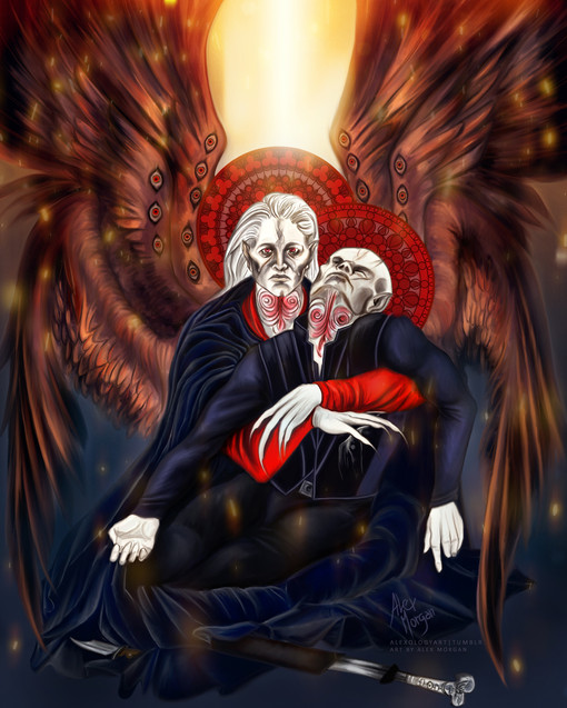 Have some more Demon Aziraphale from my omen swap au anyways XD Check out the tumblr or pillowfort links for the written excerpt that goes with it!