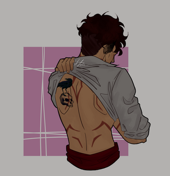 I came up with a headcanon about Aziraphale’s angelic accents and decided I needed to do some art for Crowley’s demonic ones! Considering he’s a shapeshifter, I like to think that Crowley frequently has some little patch of scales on him at any given time, particularly along his lower back and spine.