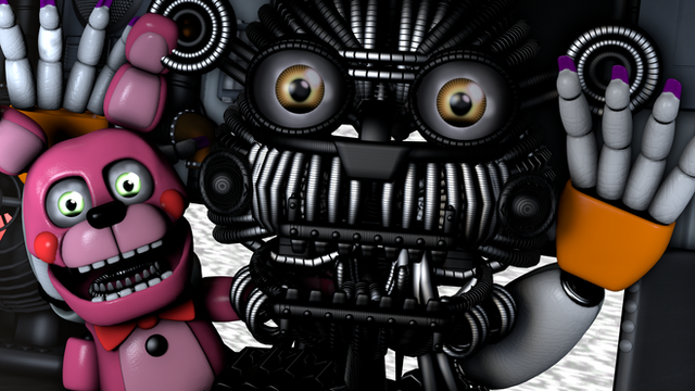 "SNAP! Caught the photo of you two beautiful robots. Great-uh, architecture, Mr. Afton. hehe...""Wait, hold on a second,"
