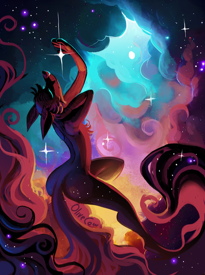 HOOGHHGHG boy this took....3-4 hours?? about? very experimental but im SO happy with it! A space bunny having fun with a goopy nebula :3cwhy does he have wings if hes in a place with no gravity? Aesthetic(tm)!