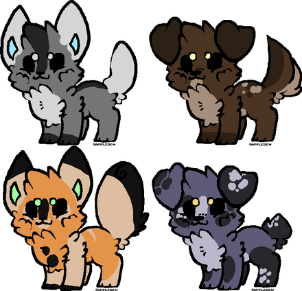 Some foxes! the names are their breeds; Grey, Silver, Bengal, and Red!gray: open