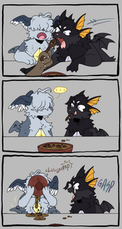 Tony watched the brown gro in concern, they had been coughing for longer than 5 minutes at least. Their glands continously leaked as they coughed, almost like they were trying to get something out of their throat. But that didn't make much sense, that black stuff easily came out with each cough.. It practically covered their entire pillow and sleeping mat.